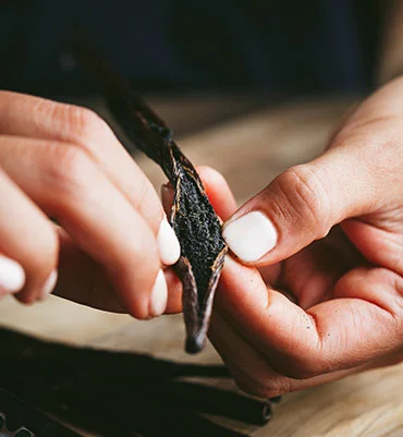 Imagine the gentle hum of Madagascar’s farms, where each vanilla bean is nurtured with care, soaking up the Island’s sunshine and rich soil. It’s here amidst this natural splendour, that our journey begins.